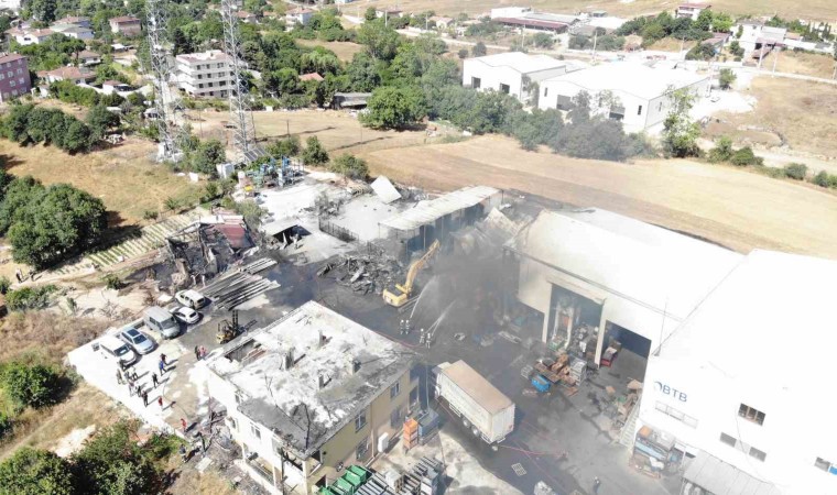 Kocaeli’nin Gebze ilçesinde boya fabrikasında çıkan yangın, yaklaşık 1 saat süren çalışma ile kontrol altına alındı. Yangının çıktığı fabrika ve itfaiyenin çalışmaları dron ile görüntülendi.