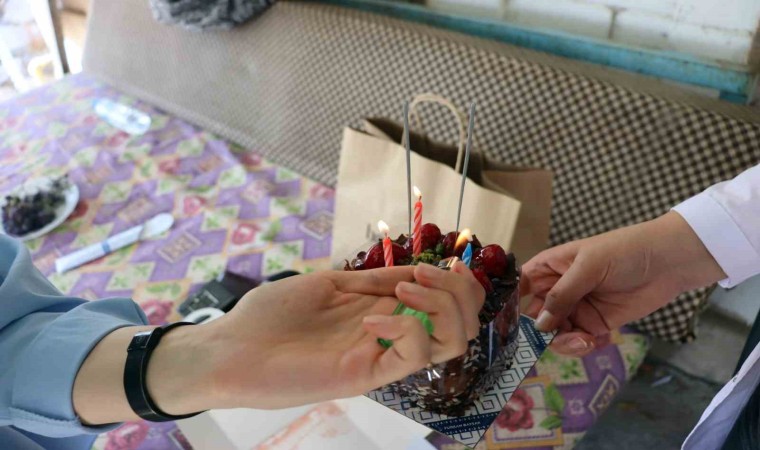 Kayseri’de sağlık çalışanları, evde muayene ettikleri dedeye 100. yaş gününde sürpriz yaparak pasta kesti.