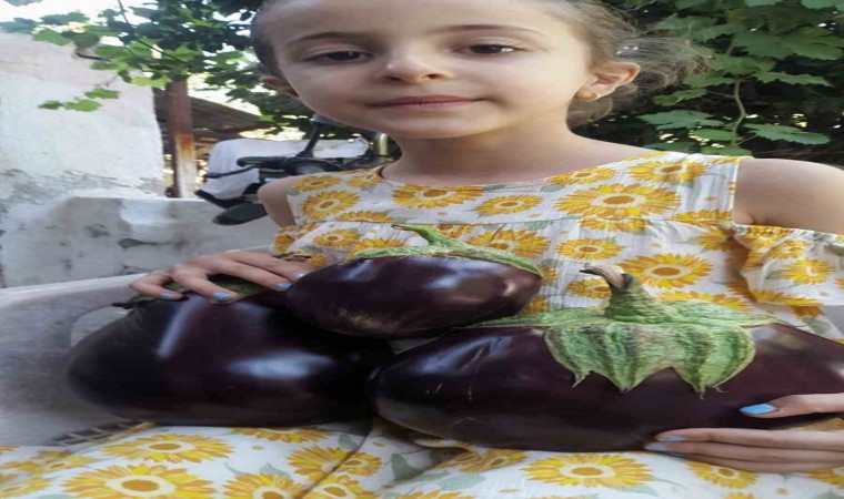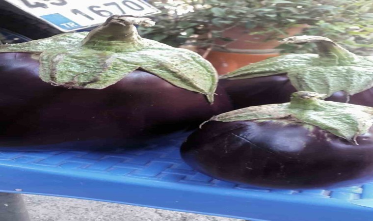 Manisa’nın Sarıgöl ilçesinde ağırlığı 1 kilogramdan fazla gelen patlıcanlar ilgi odağı oldu.