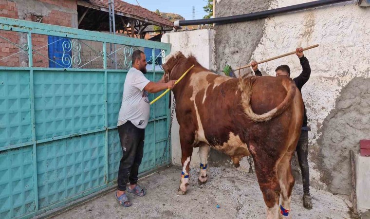 "Paşa" adını verdiği kurbanlığın 3 yaşında olduğunu belirten Kaya, “Kurbanlığımız üç yaşında. Bir yıl anne sütü beslendi. Vücut gelişimi için de bir yılda merada otladı. Son bir yıldır da ahırda besi yapılıyor. Kurbanlığımızı biraz yonca, sanayi yemi ve arpa ezmesi ile besledik. Çiftliğimizin güzidesi olduğu için çocuklar da biraz daha fazla ilgi gösteriyor. Kurbanlığımız 1 ton ağırlığında. Bu ağırlık da az değil. 1 tonluk bir kurbanlık yetiştirmek de kolay değil. Sosyal medyada falan görüyoruz, ’benim danam şu kiloda’ diye paylaşımlar yapılıyor. Tartı burada, kurbanlığımız 1 ton” diye konuştu.