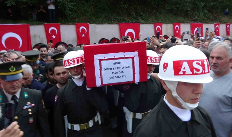 Dün sabah Kuzey Irak’ta Aşin köyü kırsalında yürütülen operasyonda teröristlerle girilen çatışmada şehit olan Piyade Üsteğmen Ömer Fatih Ayar (29), dün askeri uçakla memleketi Trabzon’a getirildi. Askeri uçaktan indirilen şehidin cenazesi omuzlar üzerinde Trabzon Büyükşehir Belediyesi’ne ait cenaze aracına konularak, Sürmene ilçesine bağlı Yemişli Mahallesi’ne baba evine getirildi. Evinin önünde helallik alınmasının ardından Sünmene Devlet Hastanesi’ne kaldırılan şehidin naaşı bugün son yolculuğuna uğurlanmak için Köprübaşı ilçesine getirildi. İlçedeki Milli Eğitim Binası önünde ikinci namazına müteakip kılınan cenaze namazına Trabzon Valisi Aziz Yıldırım, Trabzon Büyükşehir Belediye Başkanı Ahmet Metin Genç, AK Parti Trabzon Milletvekilleri Adil Karaismailoğlu ve Vehbi Koç, Trabzon İl Jandarma Komutanı Tuğgeneral Murat Yakın, Trabzon Emniyet Müdürü Murat Esertürk, şehidin babası Ali Yılmaz, ağabeyi Üsteğmen Hasan Kürşat Ayar, kardeşleri, yakınları ile yüzlerce vatandaş katıldı. Trabzon İl Müftüsü Selami Aydın’ın kıldırdığı cenaze namazının ardından şehidin naaşı top arabasına konularak getirildiği aile kabristanlığında defnedildi.
