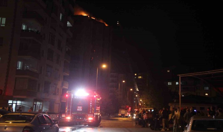 Kayseri’nin Talas ilçesinde 10 katlı binanın çatısında yangın çıktı. Alevler çatıyı sararken itfaiye ekiplerinin müdahalesi sürüyor.