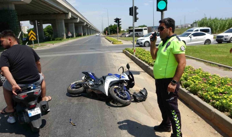 Kaza; Manavgat-Alanya D-400 kara yolu Sorgun Otogar Köprülü Kavşak yan yolda yaşandı. Edinilen bilgiye göre, Antalya istikametinden Alanya istikametine seyir halindeki Tunahan Hinti’nin kullandığı 07 BMM 614 plakalı otomobil, Otogar Kavşağı’nda, Sorgun Bulvarı’ndan Otogar istikametine gitmekte olan Kaan Dalkılıç’ın kullandığı 01 ADK 609 plakalı motosiklete çarptı. Kazada yaralanan motosiklet sürücüsü 112 Sağlık ekiplerinin olay yerindeki müdahalesinin ardından ambulansla hastaneye kaldırıldı.