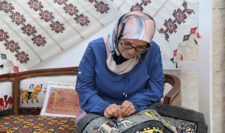 Dünyanın ilk halısı ve ilk düğümlü halısının desenlerinin Isparta’da kanaviçeye çevrildiğinin bilgisini veren Memiş, “Renklere sadık kaldığımız koltuğumuzun işlemelerini öğrencimiz Atiye Delibaş ile birlikte tam 2 yılda tamamladık. 10 santimetreye 36 düğüm uyguladık. Çok yorulduk ama çok değerli bir ürün ortaya çıktı. Satmak istersem 100 bin TL’den aşağı vermek istemem. Bir daha böyle bir eseri çıkaramam, böyle bir koltuk bulmak da zordur. Şu an için bu koltuğumuz diğer kursiyerlerimize ilham olacak. Önünde bulunan halı ise eski battaniyelerden yapıldı. Keçe tekniği ile yapıldı” diye konuştu.