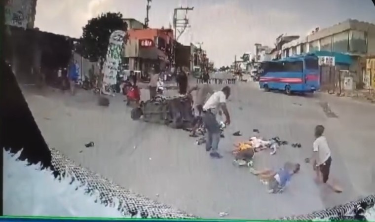 Edinilen bilgiye göre kaza merkez Yüreğir ilçesine bağlı Güzelevler Mahallesinde meydana geldi. İddiaya göre, A.T. (10) annesi Hülya Takır ve 9 kişiyi de yanına alarak 3 tekerlekli elektrikli bisiklet ile yola çıktı. A.T. elektrikli bisikletle Güzelevler Mahallesinde ara sokaktan Levent Caddesine dikkatsizce çıkınca, Ramazan A. yönetimindeki 01 M 0110 dolmuş çarptı. Çarpmanın etkisiyle elektrikli bisikletteki 11 kişi yola savruldu. Kaza anı ise dolmuşun güvenlik kamerasına saniye saniye yansıdı. Dolmuş sürücüsü ve yolcular hemen yaralananların yardımına koştu. Yaralılar çağrılan ambulanslarla hastanelere kaldırıldı. Yaralıların hastanedeki tedavisi devam ederken sürücü ifadesi alınmak üzere polis merkezine götürüldü. Polis kazayla ilgili inceleme başlattı.