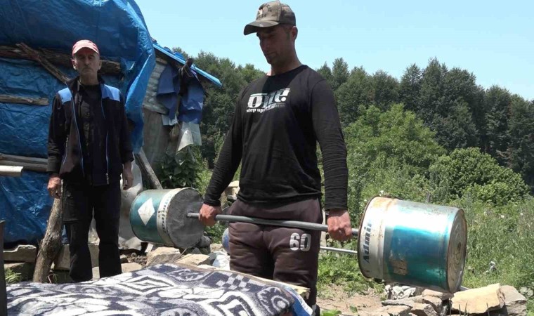 BURSA'DA 10 YILDIR DAĞDA TEK BAŞINA YAŞAYARAK HAYATINI İDAME ETTİREN 38 YAŞINDAKİ İLHAN BUDAK, BİDONLARIN İÇİNE BETON DÖKEREK YAPTIĞI YAKLAŞIK 200 KİLOGRAM AĞIRLIKLARLA ANTRENMAN YAPIYOR. BUDAK, EKONOMİK DESTEK SAĞLANABİLDİĞİ TAKTİRDE TÜRKİYE'Yİ OLİMPİYATLARDA TEMSİL ETMEK İSTEDİĞİNİ İFADE ETTİ.
