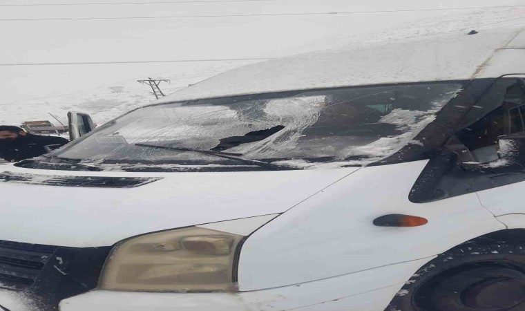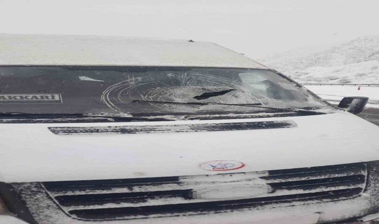 Hakkari’nin Yüksekova ilçesinde seyir halindeki yolcu minibüsünün ön camı, dağdan düşen kaya parçaları ile kırıldı. Minibüste bulunan 10 yolcu ölümden döndü.