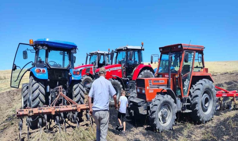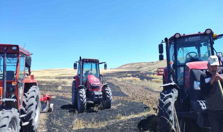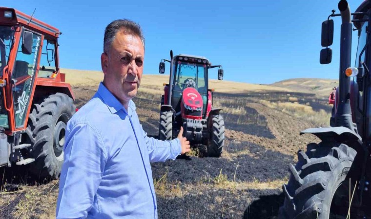 Sivas’ın Şarkışla ilçesinde tarım arazisinde çıkan yangına köylüler traktörleri ile müdahale etmeye çalıştı. Çiftçilerin çabası yetersiz kalırken, 100 dönümlük ekili tarım arazisi küle döndü. Yanan tarım arazisi havadan görüntülendi.