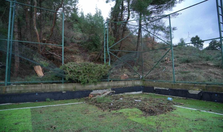Bursa’da yaklaşık 100 dönüm alan içerisinde bulunan ağaçlar, ömrünü tamamladığı gerekçesiyle kesilerek yerine yeni fidanlar dikildi. Alınmayan önlemden dolayı kesim sırasında bir ağaç 140 sporcunun antrenman yaptığı halı sahanın içerisine düştü. Ağaçların kesiminde bir usulsüzlük olmadığını söyleyen mahalleli, yeni dikilen fidanlar büyümeden diğer ağaçların kesilmemesi gerektiğini söyledi.
