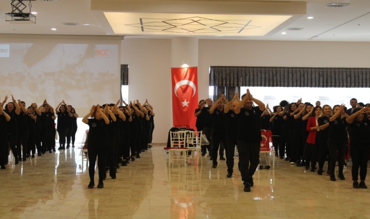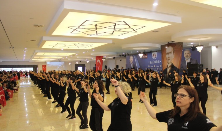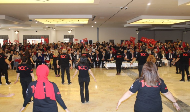Ankara’nın Sincan ilçesinde 100 öğretmen, Cumhuriyet’in 100. yılı dolayısıyla "Sarı Zeybek" oyununu sergiledi.