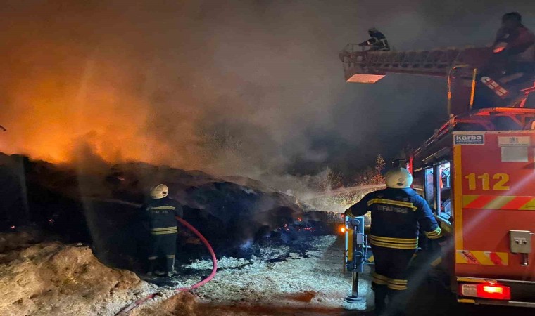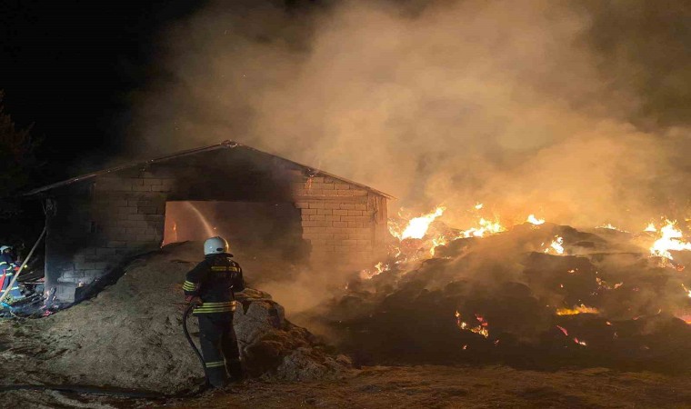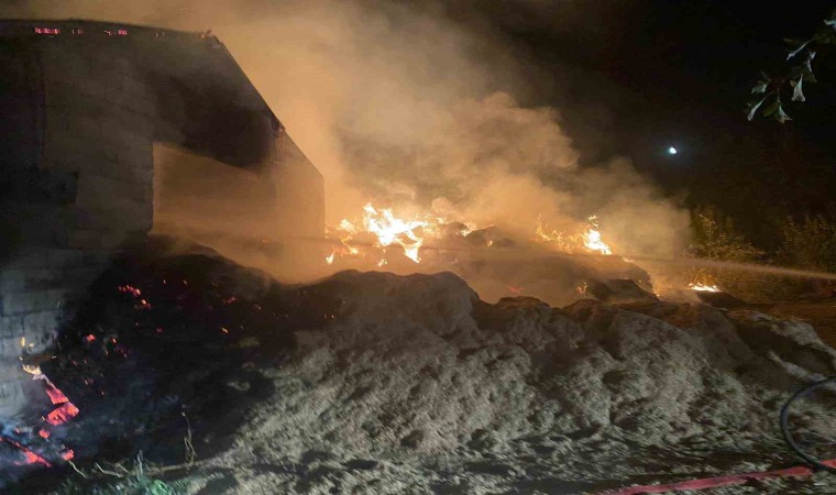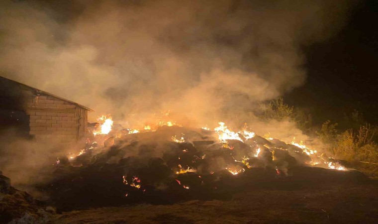 Erzincan’ın Gölpınar köyünde çıkan yangında 100 ton saman yandı.