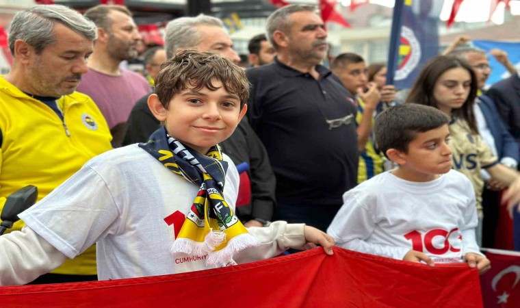 Türkiye’nin birçok noktasında Cumhuriyet’in 100. yılı coşkuyla kutlanmaya devam ediyor. İstanbul’da akşam saatlerinde boğaz geçişi ve uçuş gösterilerinin ardından Arnavutköy’de Fenerbahçe taraftarları kortej düzenledi. Meşalelerin yakıldığı, sloganların atıldığı korteje katılan 100 yaşındaki Remziye Tosun da, kutlamalara tuttuğu takımın formasını giyerek katıldı. Düzenlenen kortejin en önünde yer verilen Remziye nine de gençlere katılarak korteji tamamlandı. Taraftarın meşaleler yakarak yaptığı kortej dron ile havadan da görüntülendi.