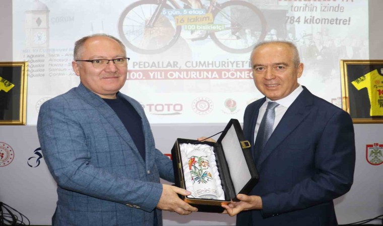 Sivas Valisi Yılmaz Şimşek de, yaptığı konuşmasında sporcuların 784 kilometrelik parkurda ter dökeceğini hatırlatarak, “Cumhuriyetimizin 100 yılı onuruna, uluslararası 100. yıl Cumhuriyet Bisiklet Turu’nun Cumhuriyet kenti Sivas’tan başlayacak olmasının mutluluğunu ve gururunu, bu tarihi binada birlikte yaşıyoruz. Sporcularımız cumhuriyetin temellerinin atıldığı Sivas’tan başlayarak Samsun’a uzanan oradan da başkentimiz Ankara’ya kadar 784 kilometre boyunca bisiklet pedallarına milli mücadele ruhu ile döndüreceklerdir. Aynı zamanda bu organizasyon bisiklet sporunun yerel ve küresel ölçekli geliştirmekle birlikte İç Anadolu ve Karadeniz Bölgesi’nin doğal güzelliklerini ve turizm değerlerini ulusal ve uluslararası düzeyde tanıtma fırsatını da bizlere sunacaktır. Bu özel yarışlara yurt içinden ve yurt dışından katılım sağlayacak takımlara teşekkür ediyor, sporcularımıza milli mücadele ruhu ile çıktıkları bu turda üstün başarılar diliyorum” diye konuştu.