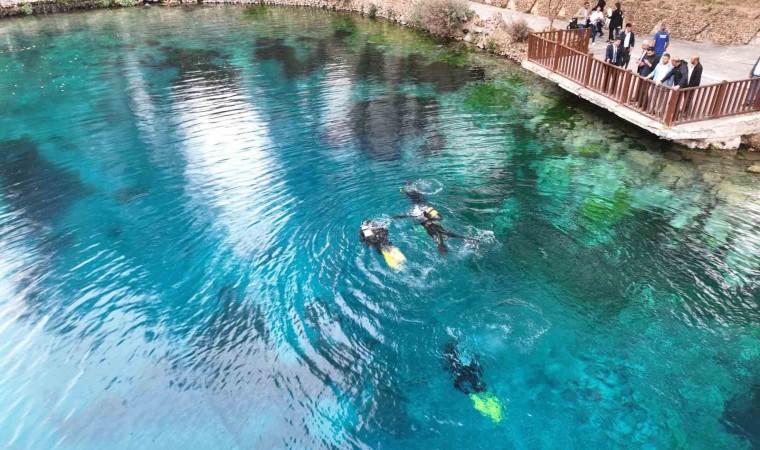 Sivas’ta dalgıçlar Dünya’nın en berrak sularından biri olan Gökpınar Gölüne dalış yaparak su altında Cumhuriyetin 100. Yılını kutladılar.