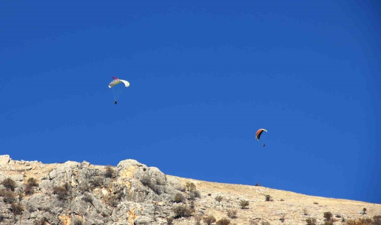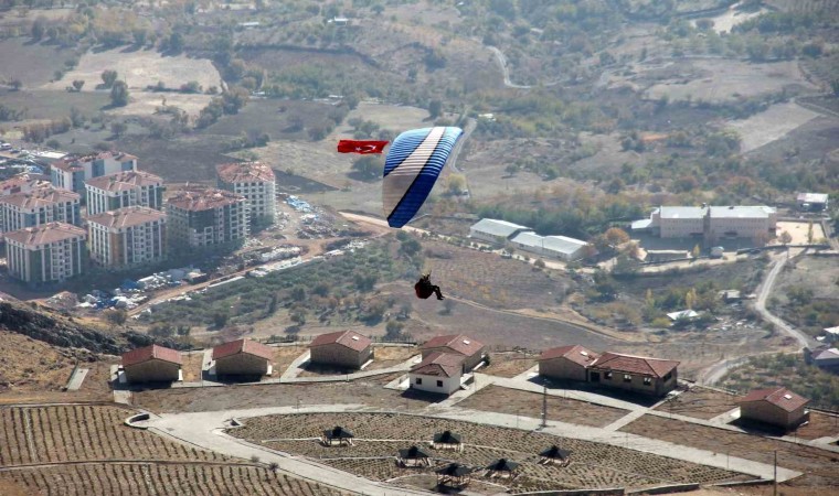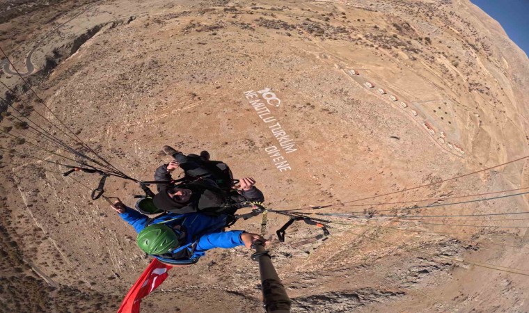 Adıyaman’ın Tut ilçesine Fransa’dan gelen Valentin Berland, 100’üncü Yıl Yamaç Paraşütü etkinliğinde gökyüzünde süzüldü.