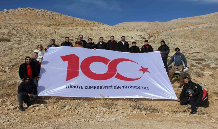 Türkiye Cumhuriyeti’nin kuruluşunun 100’üncü yılı nedeniyle Adıyaman’ın Tut ilçesinde farklı bir etkinlik gerçekleştirildi. Tut Kaymakamlığı ve İlçe Milli Eğitim Müdürlüğü öncülüğünde, vatandaşların da destekleriyle, Toroslar’ın uzantısı olan Hacı Muhammet Dağı’nda daha önce bulunan ‘Ne mutlu Türküm diyene’ yazınının üst kısmına 100’üncü yıl logosu yapıldı. Taş ve kireçle yeni logo yapılırken yazı ise kireçle boyandı.