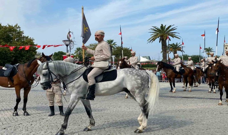 Zafer Yürüyüşü ile başlayan İzmir’in kurtuluşunun 101’inci yıl dönümü etkinlikleri, süvari birliklerinin İzmir Valiliği önünde temsili olarak İzmir’in kurtuluşunu canlandırmasıyla sürdü. Gerçekleştirilen törende İzmir Valisi Süleyman Elban, süvari birlikleri komutanına Kur’an-ı Kerim ve bayrak takdiminde bulundu.
