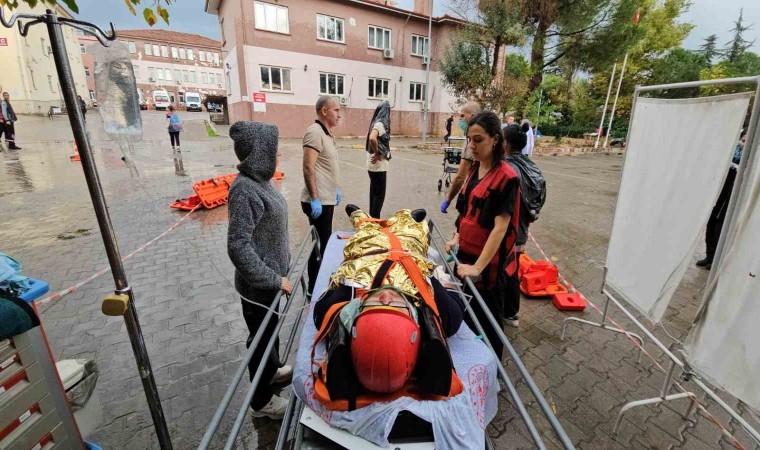 Altın madeninde heyelan tatbikatı gerçekleştirilirken, aynı anda Sındırgı Devlet Hastanesinde de mor kod ile deprem tatbikatı gerçekleştirildi. Deprem tatbikatı esnasında yağan yağmura rağmen tatbikat devam etti. Zorluklara hazırlıklı olmak adına gerçeğini aratmayan bir tatbikat gerçekleştirildi.