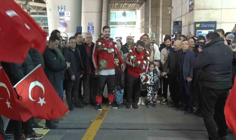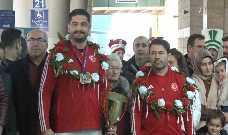 Avrupa Güreş Şampiyonası erkekler serbest stil 125 kilo finalinde Gürcistanlı Petriashvili’yi 5-4 yenerek 11. kez altın madalyayı kazanan Taha Akgül ile turnuvayı şampiyon tamamlayan Serbest Stil Güreş Milli Takımı, Ankara Esenboğa Havalimanında coşkuyla karşılandı.