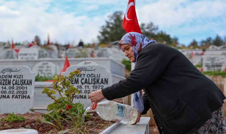 Merkez üssü Kahramanmaraş olan 6 Şubat günü yaşanan depremlerin ardından 2 oğlunu, oğullarının eşlerini ve 7 torunu olmak üzere toplam 11 kuzusunu kaybeden 80 yaşındaki gözü yaşlı anne her hafta mezarlığa gidip mezar taşlarını öpüp okşayarak özlemini dindirmeye çalışıyor.