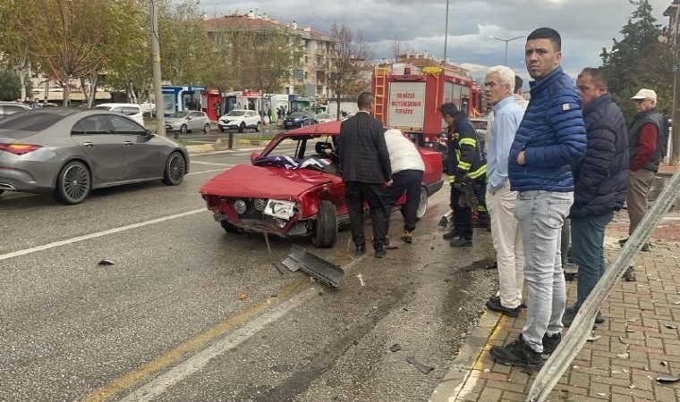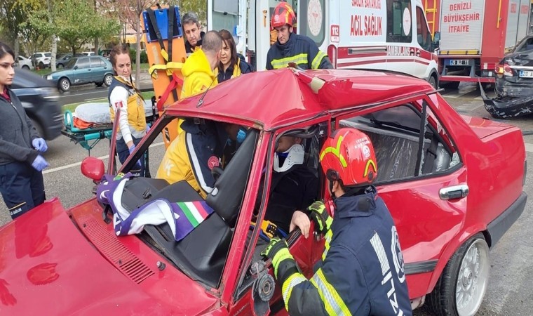 Denizli’de 110 kilometre hızla makas atarken direksiyon hakimiyetini kaybeden sürücü önce park halinde bulunan otomobile, ardından ise seyir halindeki başka bir araca çarparak durabildi. Hurdaya dönen aracın içerisinde sıkışan sürücü, ölümden kıl payı kurtuldu.