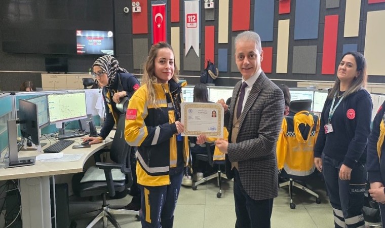 Erzincan 112 Acil Çağrı Merkezi çalışanlarına belgeleri Erzincan İl Sağlık Müdürü Dr. Cihan Tekin tarafından takdim edildi. İl Sağlık Müdürü Dr. Tekin, Vali Aydoğdu’nun selamını ileterek, özverili çalışmalarından dolayı 112 Acil Çağrı Merkezi çalışanlarına teşekkür etti, başarılarının devamını diledi.