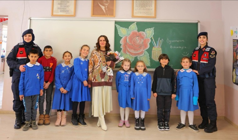 Bayburt’a 16 kilometre uzaklıkta bulunan Çiğdemtepe İlköğretim Okulunun 8 öğrencisi, öğretmenlerine unutulmayacak bir Öğretmenler Günü sürprizi yaptılar. 112’yi arayarak öğretmenlerine sürpriz yapacaklarını, yardıma ihtiyaçları olduğunu söyleyen öğrencilerin yardımına ise Bayburt İl Jandarma Komutanlığı Aile İçi Şiddetle Mücadele ve Çocuk Kısım Amirliği yetişti. Küçük öğrencilerin ihbarı üzerine harekete geçen jandarma ekiplerini, öğrenciler köyün girişinde karşıladılar. Jandarmayla birlikte okula giden çocuklar sınıflarını süsleyerek, tahtaya günün anısına gül resmi çizip, yanına "Öğretmenim bahçedeyiz" notunu yazdılar. Ders için sınıfa giren öğretmen ise notu görünce heyecanla bahçeye çıktı. Jandarma ekiplerini ve öğrencilerini ellerinde çiçeklerle, pankartlarla gören öğretmenin ise gözleri doldu, duygusal anlar yaşadı. Öğretmenlerine sarılarak ellerindeki çiçekleri veren öğrenciler, öğretmenlerinin Öğretmenler Günü’nü kutlayıp, kendilerini yalnız bırakmayan asker ablalarına ve abilerine teşekkür ettiler. Kendileri küçük, yürekleri büyük öğrencilerin sürprizi yüzlerde tebessüm oluştururken, jandarmayla iş birliği içinde gerçekleştirilen sürpriz yürekleri ısıttı. Unutulmaz bir gün yaşadığını söyleyen köyün tek öğretmeni, sürprizde emeği geçen jandarma ekiplerine, öğrencilerine şükranlarını sundu.