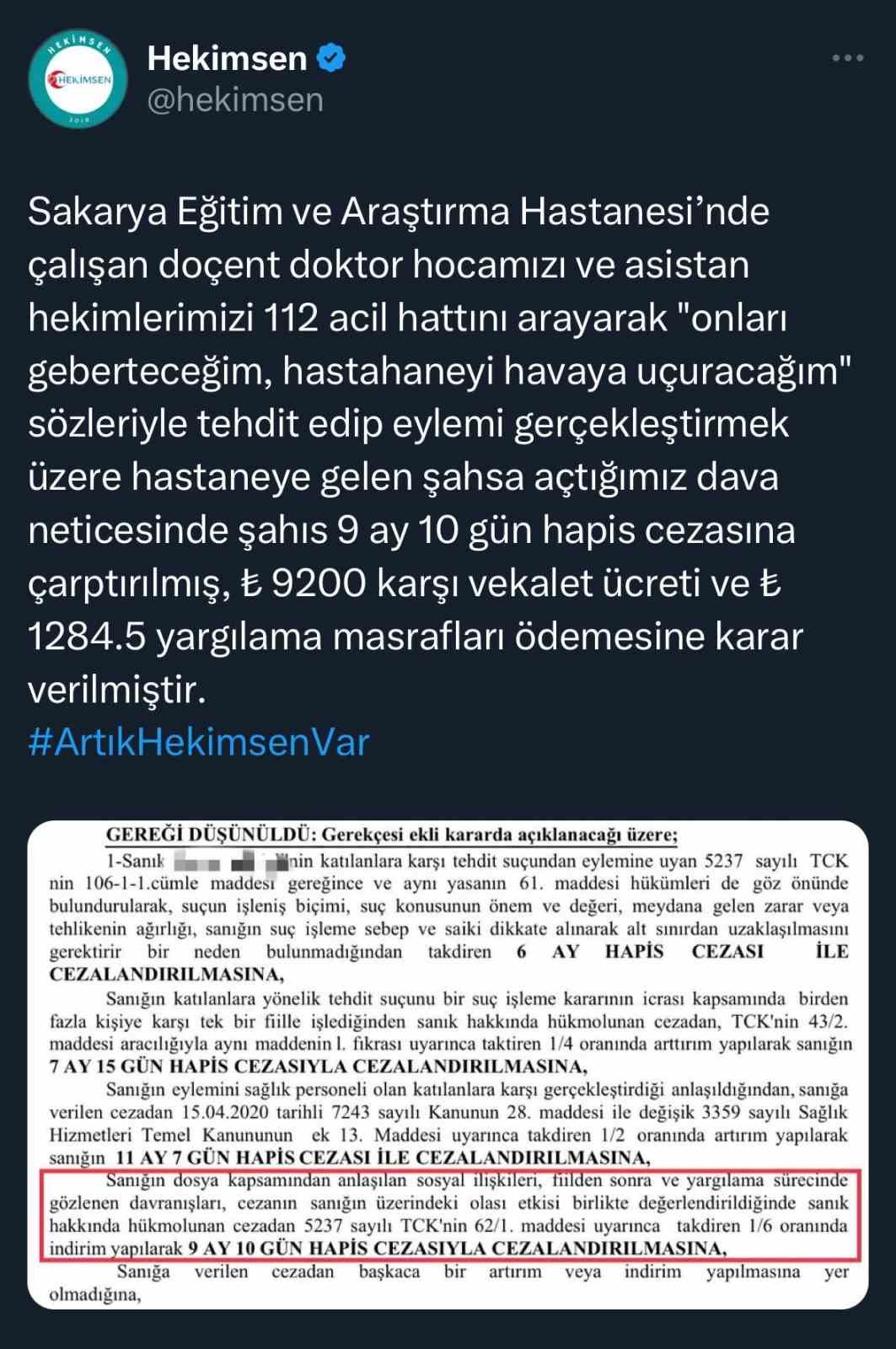 HEKİMSEN TARAFINDAN KONUYA İLİŞKİN YAPILAN AÇIKLAMA
