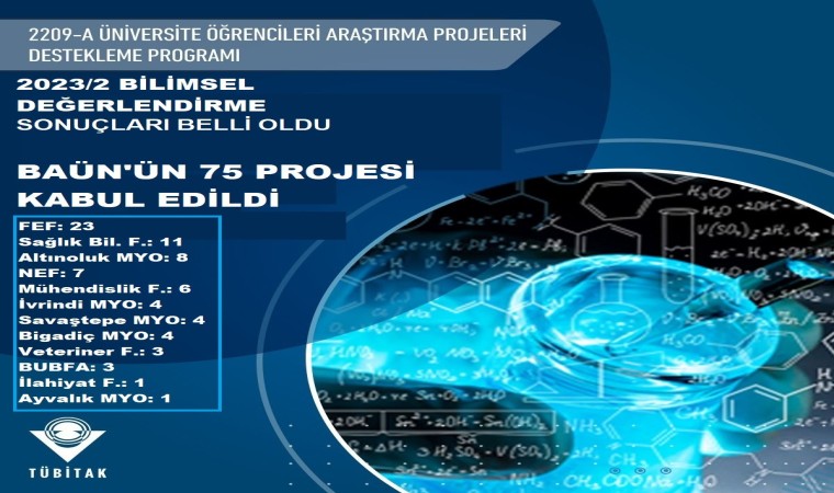Balıkesir Üniversitesi öğrencilerinin başvuru yaptığı 2209-A Öğrencileri Araştırma Projelerinin 75’i desteklenmeye layık bulundu. 2023 yılında 117 projesi kabul edildi