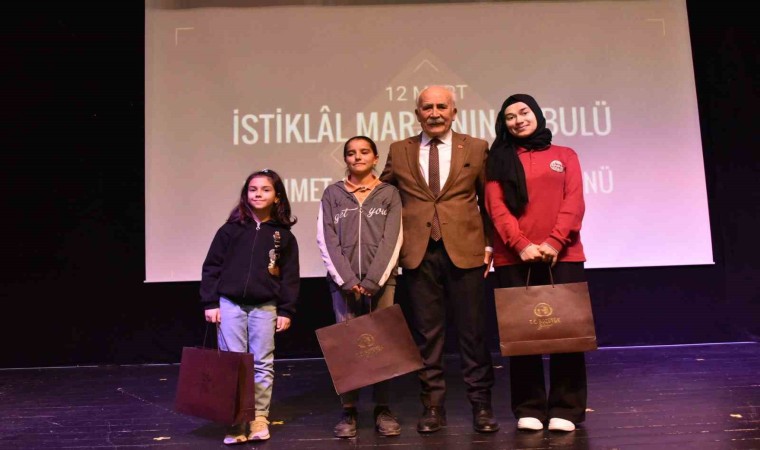 Okul müdürünün konuşmasının ardından program İstiklal Marşı’nı okuma yarışmasında ortaokul kategorisinde birinci olan öğrencinin İstiklal Marşı’nı okuması, günün anlam ve önemine uygun şiir okunması ve Kumral Abdal Anadolu Lisesi öğrencileri tarafından hazırlanan oratoryonun sunulması ile devam etti. Program 12 Mart İstiklal Marşı’nın kabulü münasebetiyle yapılan yarışmalarda dereceye giren öğrencilere protokol tarafından ödüllerinin takdim edilmesi ile sona erdi.