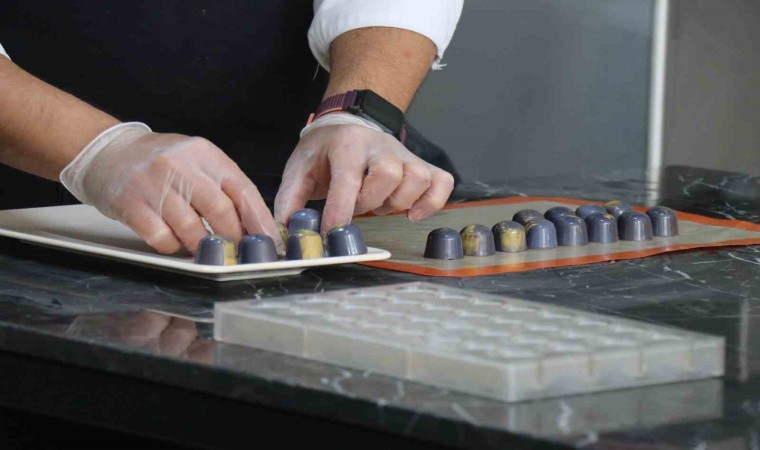 57 reçeteli ürünleri ile hizmet veren ve vegan, glutensiz, diyabetik, çocuk ve sporcu beslenmesine yönelik çikolata ve çikolatalı ürünler üretimi yaptıklarını kaydeden Bozkurt, “Amacımız değişen dünya trendlerinde sağlıklı beslenme alışkanlıklarımızda da ödün vermeden çikolata sektöründe yeni ürünler kazandırmak. Bu vizyonla ilerlediğimiz noktada bizler yaklaşık 57 çeşit reçetemiz ile Denizli’de ürün satışı yapmaktayız. Kullandığımız ham maddelerde bitki ekstrakları, bal kabağı, anason, lavanta ve bitki çekirdekleri gibi ürünleri kullanıyoruz. Bunları kullanarak çocuk beslenmesinde, sporcu beslenmelerinde, diyabetik ve vegan beslenmede yer etmek istiyoruz. Amacımız çikolata sektöründe farklı bir lezzet ve farklı bir deneyim yaşatmak istiyoruz. Kullandığımız ürünler bitki ekstraklarından aldığımız ekstrak ile kakao yağının birleşmesiyle oluşuyor. Atölyede de bunun üzerine birçok çalışma yapıyoruz. Yaklaşık 10’a yakın rengi doğal olarak kullanıyoruz ve oluşturuyoruz. Bu konuda ön planda olan siyah havuç ve ıspanak diyebilirim. Siyah havuçta mor ve siyahın tonlarını 4 rengi çekebiliyoruz. Ispanakta da yeşilin tonundan renk elde edip bu ekstraklardan ile birlikte kakao yağı ile birlikte çikolata da kullanıyoruz. Bunun ve bu tarz ürünlerin ise çok daha fazla yaygınlaşmasını istiyoruz” şeklinde konuştu.