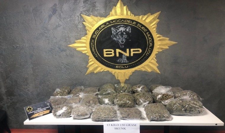 Edinilen bilgiye göre, Bolu İl Emniyet Müdürlüğü Narkotik Suçlarla Mücadele Şube Müdürlüğü ekipleri kent genelinde uyuşturucu maddeye yönelik çalışma başlattı. Yapılan çalışmalar çerçevesinde şüpheli halde olan 2 araç durduruldu. 2 araçta bulunan M.A., İ.Y., F.P. ve M.F.B. isimli şahıslar araçtan indirildi. Yapılan operasyon çerçevesinde 2 araç didik didik arandı. Aramalar neticesinde 4 şahsın üzerinden ve araçlardan 13 kilo 150 gram skunk maddesi çıktı. Olayla ilgili 4 şüpheli gözaltına alındı. Emniyetteki işlemleri tamamlanan 4 şahıs adliyeye sevk edildi. M.A., İ.Y. ve F.P. isimli şahıslar çıkarıldıkları mahkemece tutuklanırken, M.F.B. isimli şahıs ise adli kontrol şartıyla serbest bırakıldı.