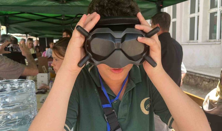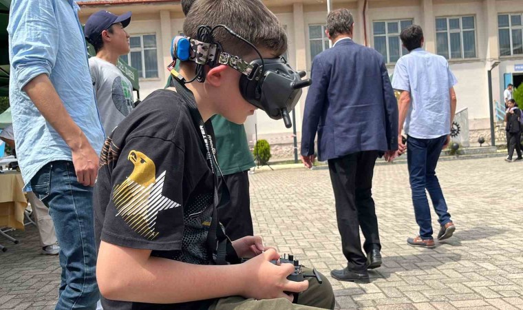 Bolu’da 13 yaşındaki Hasan Demirkol ve Haluk Murat’ın tasarladığı dron, Bolu Teknoloji Festivali’nde yoğun ilgi gördü. Dronla bağlantı sağlayan gözlükte uçuyormuş hissi verdiğini söyleyen Haluk Murat, “Uçuş çok güzeldi. İleride İHA/SİHA pilotu olmak istiyorum” dedi.