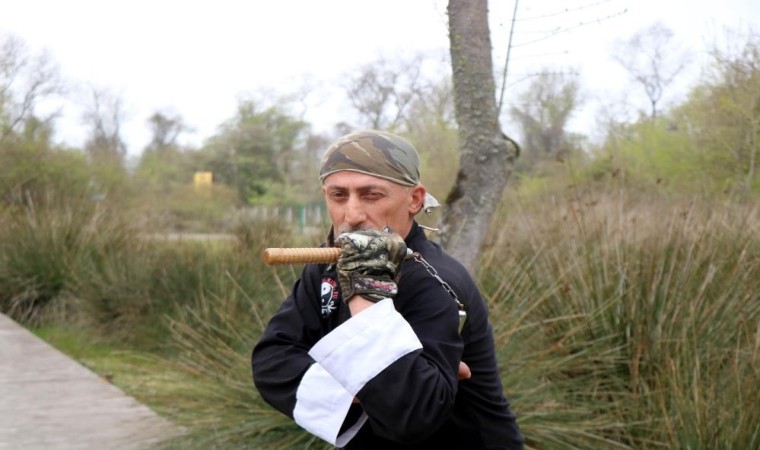 Milli wushu antrenörü Bilal Çelebi, haftanın 3 günü Ninja kıyafetlerini giyerek, kılıç ve diğer ekipmanlarıyla birlikte ormanda antrenman yapıyor. 47 yaşındaki Bilal Çelebi, Samsun’un 19 Mayıs ilçesinde yaşıyor. Çocuk yaştan itibaren dövüş sporlarının birçok branşında eğitim alan Çelebi, 1997 yılında wushu antrenörlüğü yapmaya başladı. Milli takım antrenörlüğü de yapan Çelebi, daha sonra yakın koruma ve silah kullanma dersleri de vermeye başladı. Ürettiği Ninja ve koruma tekniklerinin patentini alan Bilal Çelebi, tekniğinin kullanıldığı 15 farklı ülkeden ise ‘doktora’ ünvanı aldı. 400’ün üzerinde teknik üreten Bilal Çelebi, bu teknikleri unutmamak ve yenisini eklemek adına haftanın 3 günü ormanlık alana giderek Ninja kıyafetleri çalışma gerçekleştiriyor.