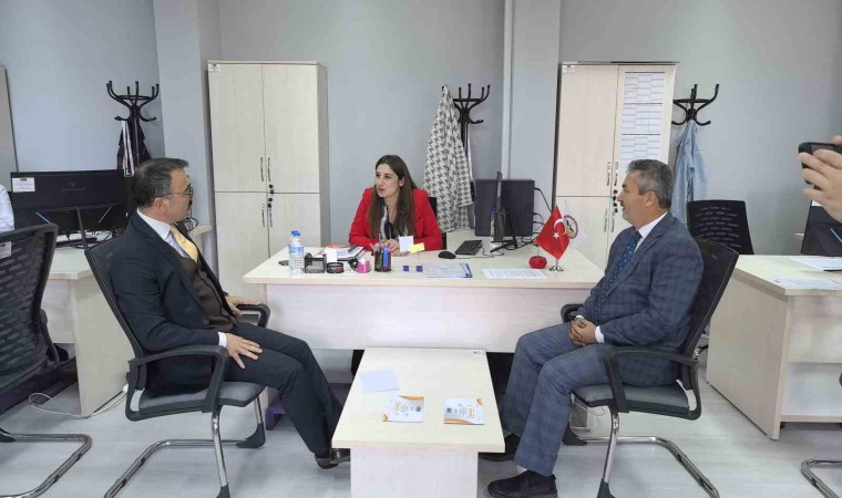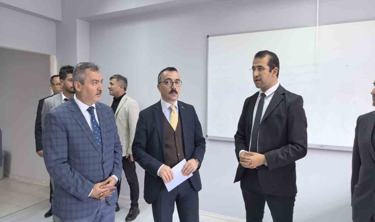 Kaymakam Eren Arslan, Milli Eğitim Müdürü Halil İbrahim Zengin ile Hacı Sevim Yıldız Mobilya ve İç Mekan Tasarımı Teknolojisi Mesleki ve Teknik Anadolu Lisesi’nde (MTAL) açılan merkezi ziyaret etti.