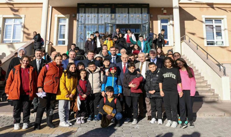 Altınok konuşmasının ardından öğrenci ve öğretmenlerle birlikte kurdele keserek halı sahayı hizmete açtı.
