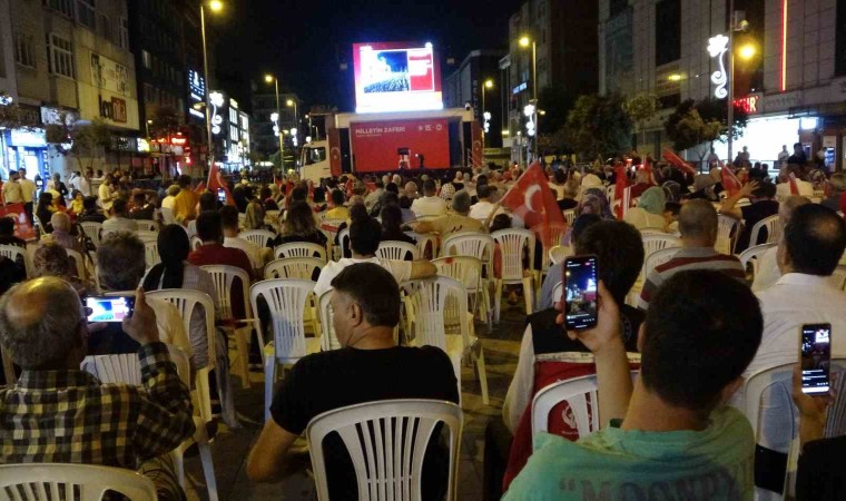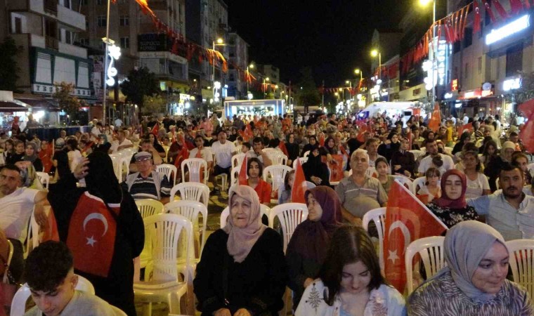 Kaymakam Kemal Şahin, "Bundan tam 8 yıl önce bir milletin görebileceği en hain gecelerden birisini yaşadık. O gün ülkemizin kıt kaynaklarıyla ülkemizi savunmak üzere yedirilen içirilen düşmana karşı eğitilen fakat maalesef milletine karşı silah tutan hainlerle karşı karşıyaydık. Ama milletimiz Cumhurbaşkanımızın da çağrısıyla öyle bir uyandı ki, onlara öyle bir ders verdi ki, hem onlara hem de hain düşüncesi olan dünya milletlerine örnek bir kahramanlık sergiledi" diye konuştu.
