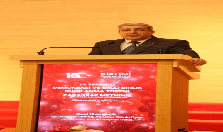 Biruni Üniversitesi, 15 Temmuz Demokrasi ve Milli Birlik Günü’nde şehitlerin anıldığı bir tören düzenlendi. Törende konuşan şehit Mete Sertbaş’ın eşi Rahşan Sertbaş, “Eşim, canından çok sevdiği benden ve çocuklarından vazgeçmiş ancak vatanına namerdin elinin değmesine de izin vermemiştir” dedi.
