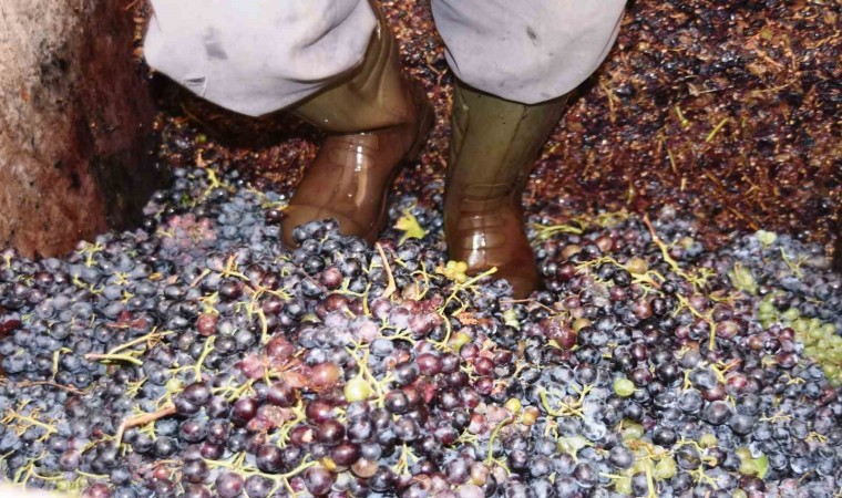 Dededen babadan kalma yöntemlere halen devam ettiklerini belirten Erkan Özer, 100 kilo üzüm suyundan 30 kilo pekmez elde ettiklerini söyledi. Özer, “Üzüm pekmezini 150-200 yıldır atalarımızdan kalan yöntemlerle yapıyoruz. Bağlarımızdan üzümlerimizi toplayıp doğal bir şekilde üzüm pekmezi üretimimizi yapıyoruz. İmece usulü ile bağlardan topladığımız üzümleri kovalarla getirip ezme kazanına koyuyoruz. Daha sonra çizmelerle ezip suyunu çıkarıyoruz. Ardından dinlendirme bidonlarına koyuyoruz. Beyaz renkteki bir toprakla mayalaştırdıktan sonra şeffaf hale geldikten sonra kaynama kazanlarımıza koyuyoruz. Bu kazanlarda 290 derecede 4-5 saat kaynıyor. 100 litre üzüm suyundan yaklaşık 30 litre üzüm pekmezi elde ediyoruz” diye konuştu.