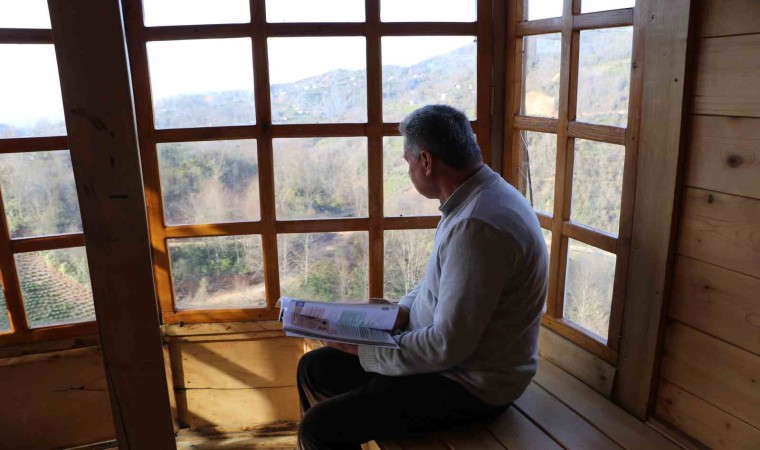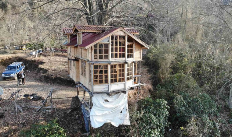 Tamamen ahşaptan yapılan evi hiçbir ustanın yardımı olmadan kendi emekleriyle yaptığına vurgu yapan Ali Hamdi Uzunhasanoğlu, “Emekli olduktan sonra hobi olarak arıcılık ve inşaat işleriyle uğraşıyorum. İnşaat işlerini çok seviyorum ve bu işlere hala devam etmekteyim. Bana diyorlar ki sen inşaat sektöründe doktorsun. Ben inşaat doktoruyum. Ben bir gün buraya geldim. Böyle durdum burada. Dedim burada her tarafı görmek şartıyla bir kamelya düşündüm. Her tarafı cam olacaktı be burada kar yağarken ben uzandığım yerden manzarayı seyretmeyi düşündüm. Burada yapıya başladım. Önce bir tarafını yaptım. Yukarı çıktım ve baktım manzara çok güzel. Dedim bu böyle olmayacak. Ben bunu daha detaylı bir şey yapayım. Bir tarafını bir tarafını daha yaptıktan sonra düşündüm ki bu da yetmez. Bu sefer diğer tarafının inşasını da yaptım. Ondan sonra içinin donatımına başladık. Evi bu şekle soktuk. Şimdi bu gördüğümüz evde hiçbir usta gelip çivi çakmamıştır. Hep kendim yaptım. Kafamda hayal edip uygulamayı keserle yapıyorum. Şimdi bana komşularım geldi. Dediler ki, ‘Ali Hamdi buraya bu evi niye yaptın? Burada düzgün bir alanın var. Burada niye yapmadın’ Bende, ‘Düz bir alanda her yerde ev var. Herkes yapar. Önemli olan kimsenin yapmadığı bu cazibeli evi yapabilmek’ dedim. Ağır ağır ilerliyorum. İnşallah ömrüm yeterse kiralamayı da düşünüyorum” ifadelerini kullandı.