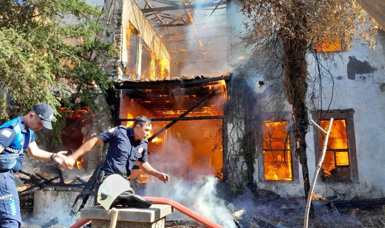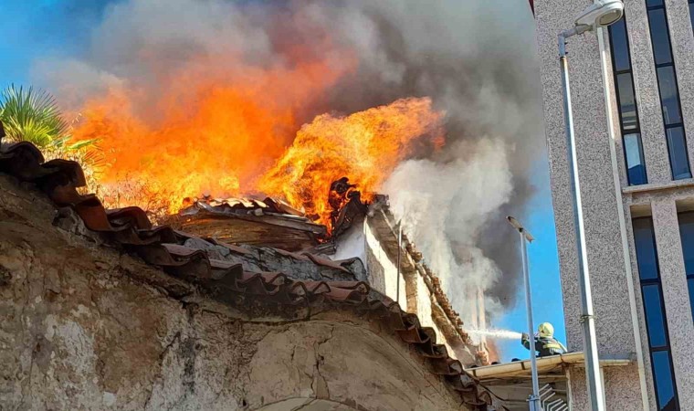Naci Karaosmanoğlu’na ait çift katlı 150 yıllık binanın ikinci katında başlayan yangına itfaiye ekipleri müdahale etti. Yanan ahşap binanın çevresinde de eski ahşap evlerin bulunması sebebiyle itfaiye ekipleri alevlerin diğer evlere sıçramaması için büyük gayret sarf etti.