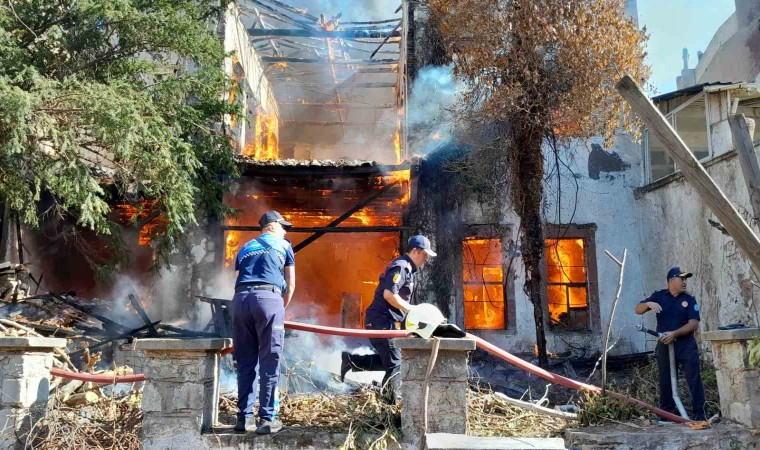 Muğla’nın Menteşe ilçesinde, tescilli tarihi binaların bulunduğu Camikebir Mahallesi’nde iki katlı ve 150 yıllık ahşap ev alevlere teslim oldu.