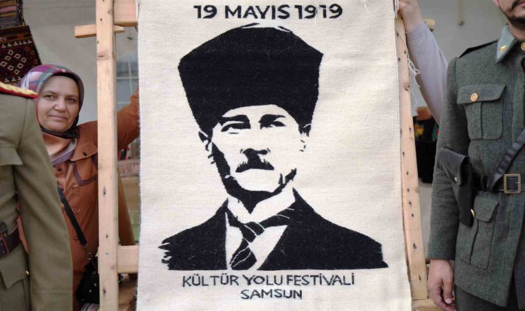 Festival kapsamında Samsun Panorama Müzesi önüne kurulan kilim dokuma tezgahında Atatürk portresi ilmek ilmek örüldü. 155 bin kişinin tek bir ilmek atarak oluşturduğu portrenin son ilmeğinin atılmasının ardından İhlas Haber Ajansı’na(İHA) bilgi veren Samsun İl Kültür ve Turizm Müdürü Cemal Almaz, "Atatürk’ün şehrindeyiz, Milli Mücadele’nin başladığı şehirdeyiz ve Kültür Yolu projesindeyiz. Projede 600’ü aşkın etkinlikler yaptık. O etkinliklerden en sembolik olanı da Atatürk posterini taş mozaikle işledik ve arkadaşlarımızın yardımıyla son mozaiği de bugün koyduk. Bundan 9 gün önce Kültür Yolu Festivali başladığı zaman bakanımıza ilk taşı koydurmuş ve ilk ilmeği attırmıştık. Bugün son ilmeği attık ve kilimden bir Atatürk posteri dokuduk yine son ilmeği temsili Atatürk’e attırdık. Son mozaiği de yine temsili Atatürk’e koydurduk. Atatürk’ün şehrinde böyle çok sembolik ve çok anlamlı bir etkinliği de gerçekleştirmiş ve bitirmiş olduk. Samsun’u da böylece Türkiye’ye bir Atatürk şehri olarak yeniden göstermiş olduk. Projemiz tamamlandı. 155 bin ilmek atacağız demiştik. İlk ilmeği Bakanımız Mehmet Nuri Ersoy’a attırmıştık. Son ilmeği az önce temsili Atatürk’e attırdık ve son ilmekle beraber 155 bin ilmekle beraber Atatürk posterini ve kilimini bitirdik. Öte yandan 55 bin taşla mozaiği tamamladık. Neden 55 bin? Tabii ki Samsun’un plaka numarası. 55 bin kişi hep beraber mozaik koyduk. İlk mozaiği yine festivalimizin başlangıcında bakanımıza koydurmuştuk. Şimdi de son 55’inci mozaiği az önce huzurlarınızda koyduk ve bitirdik. Böylece bu projeyi de tamamlamış olduk” dedi.
