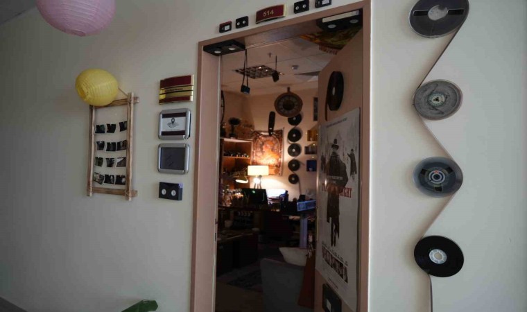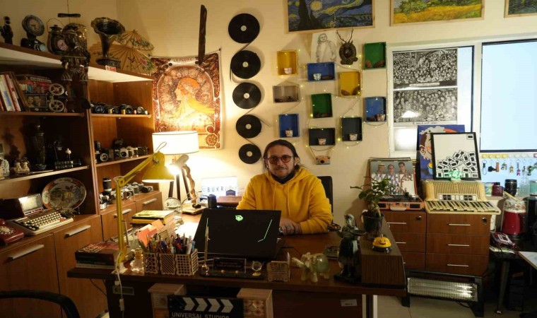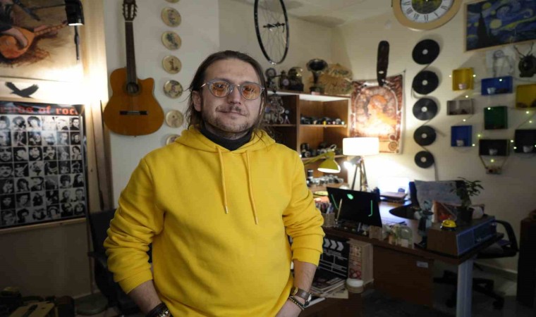 Gümüşhane Üniversitesi’nde görevli akademisyen Öğr. Gör. Serkan Eryılmaz’ın adeta sinema müzesine çevirdiği 16 metrekarelik odası görenleri hayrete düşürüyor.