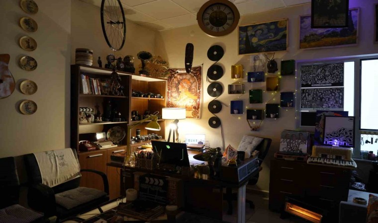 Zamanının büyük bir bölümünü geçirdiği odasının kendisine huzur verdiğini söyleyen Gümüşhane Üniversitesi İletişim Fakültesi Radyo, Televizyon ve Sinema Öğr. Gör. Serkan Eryılmaz, “Ben her zaman şunu söylerim, insan yaşadığı yeri güzelleştirebilmeli. Benim 20 saatimin en az 18 saati burada geçtiği için burayı rahat bir ortam olarak dizayn etmem gerekiyor. Belki diğer hocalarımız evlerini dizayn ediyorlardır ama benim bütün vaktim neredeyse burada geçiyor ve bu oda benim ruhumun dışarı yansıması. Ben odamda çalışırken çok bunaldığım zaman geriye yaslanır odamı incelerim. Eşyalarımı severim, tozlarını alırım, onlarla sohbet ederim. Odadan içeri girdiğim anda huzur buluyorum. Burası benim mağaram aslında, inzivaya çekildiğim yer. Bu odada daha çok sinemaya dair ağırlıklı eşyalar var. Eski fotoğraf makineleri, sinema kameraları, televizyonlar yönetmen monitörleri, vazolar, çini tabaklar, tavanda geyikli halılar gibi birçok şey var. Bu odada yok yok. İnsanlar bu odayı görünce ilk önce ne tuhaf bir adamsın diyorlar. Buraya bir öğrenci benimle konuşmaya geldiği zaman ben onu 10 dakika beklemek zorunda kalıyorum çünkü o sürede burayı incelemekle meşgul oluyor. Meslektaşlarımız da şaşırıyorlar. Her yerinde bir şey var, tavanından bile bir şey asmışız. Kimileri sadelik sever ama ben beyaz duvar görme taraftarı değilim. Benimki karışıklığın içerisinde bir düzen” dedi.