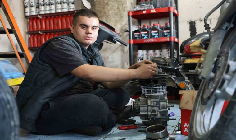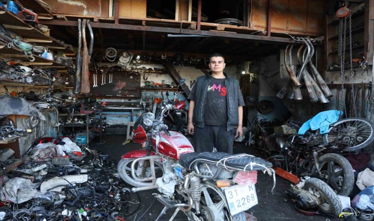 Hatay’ın Yayladağı ilçesinde küçük yaşlardan itibaren motosiklet tamircisi babasının yanında meslek öğrenen 16 yaşındaki Berkay Alkaş, mesleğinde olan yeteneğiyle yılların ustalarına meydan okuyor.