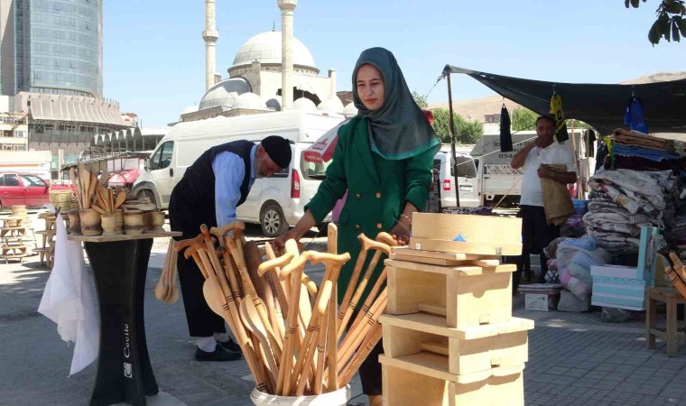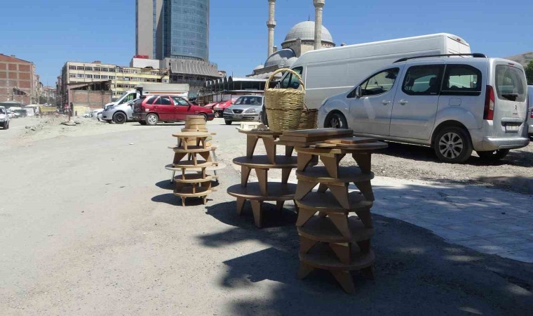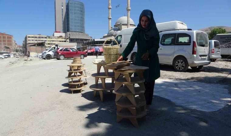 Malatya’da 6 Şubat’taki depremlerde iş yeri yıkılan 28 yaşındaki esnaf Sevilay Dirican, 162 gündür yıkılan iş yerinin bulunduğu noktada, babasının ürettiği ahşap ürünleri satarak ayakta durmaya çalışıyor.