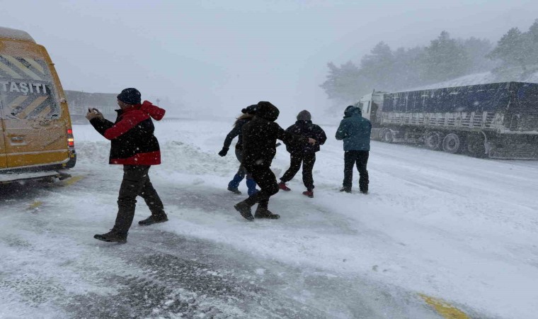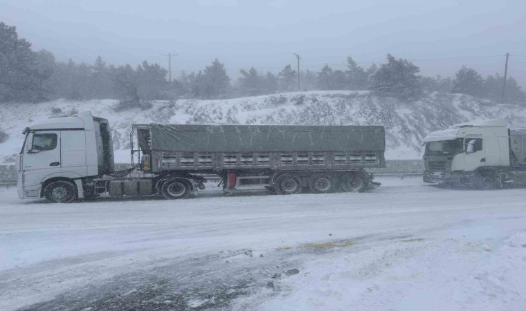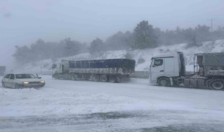 Çamlıbel Geçidi’nde etkili olan kar yağışı sürücülere zor anlar yaşattı.