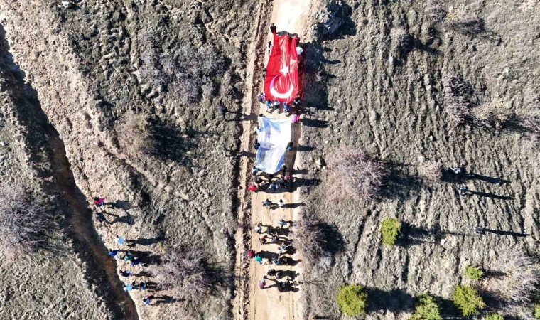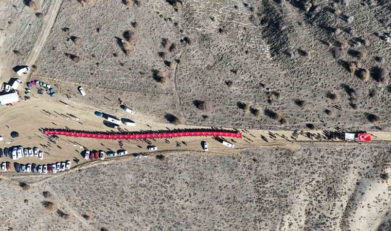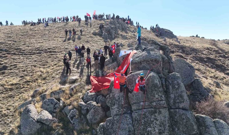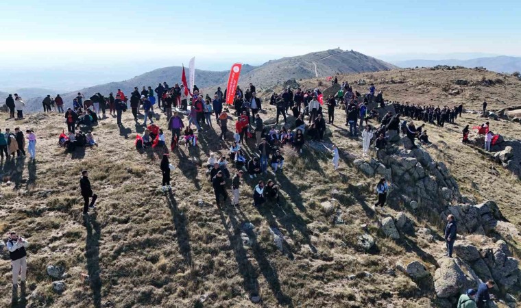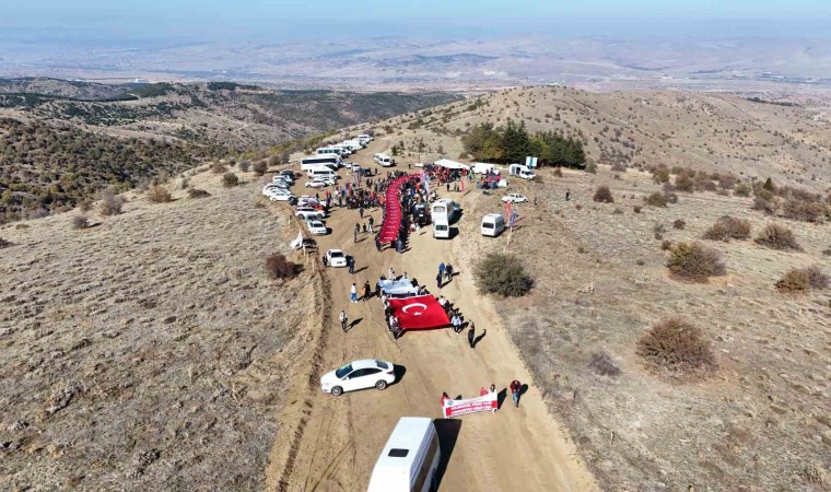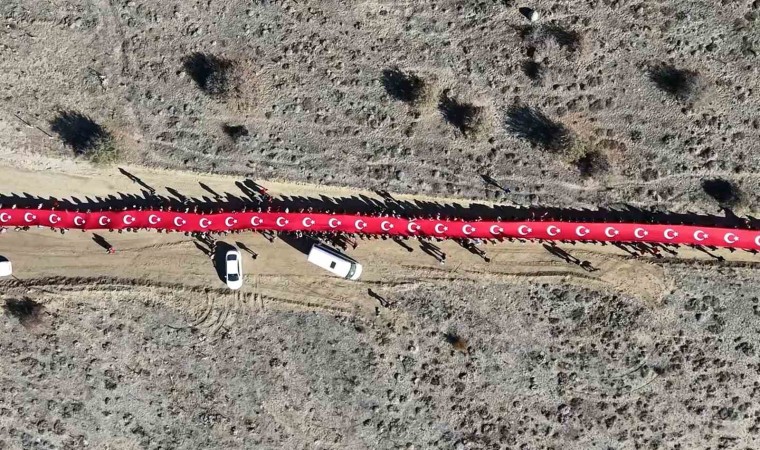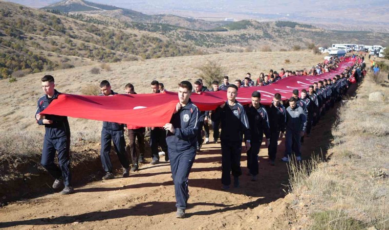 Kırıkkale’de Cumhuriyet’in 101. yılı kutlamalarına katılan vatandaşlar, 1744 rakımlı Dinek Dağı’nın zirvesine 100 metre uzunluğundaki Türk bayrağıyla yürüdü.