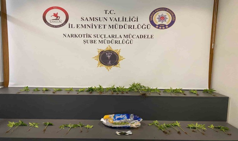 NSM ekiplerince Tekkeköy ilçesi Sanayi Mahallesi’nde S.K(46) isimli şahsın ikametinde yapılan aramada ikametin çatı katında saksılara dikili vaziyette 41 kök kenevir bitkisi ve 12,25 gram esrar maddesi ele geçirildi. S.K. yakalanarak gözaltına alındı.